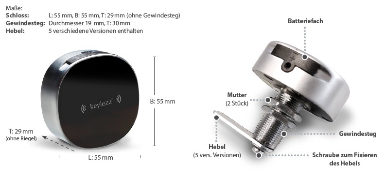 Downloadbereich "Datenblätter und Bedienungsanleitungen" Alle Schlösser werden mit Batterie und 1 Master- und 1 Verwaltungskarte ausgeliefert
